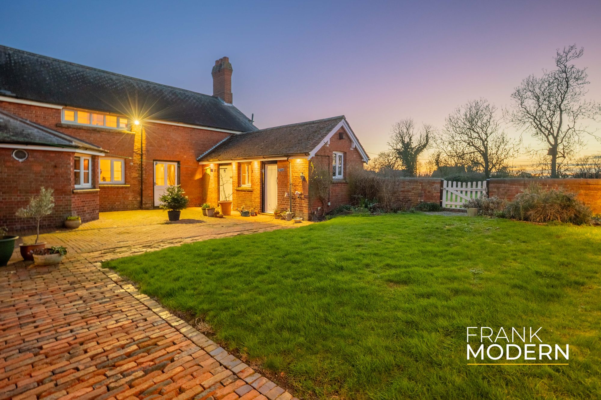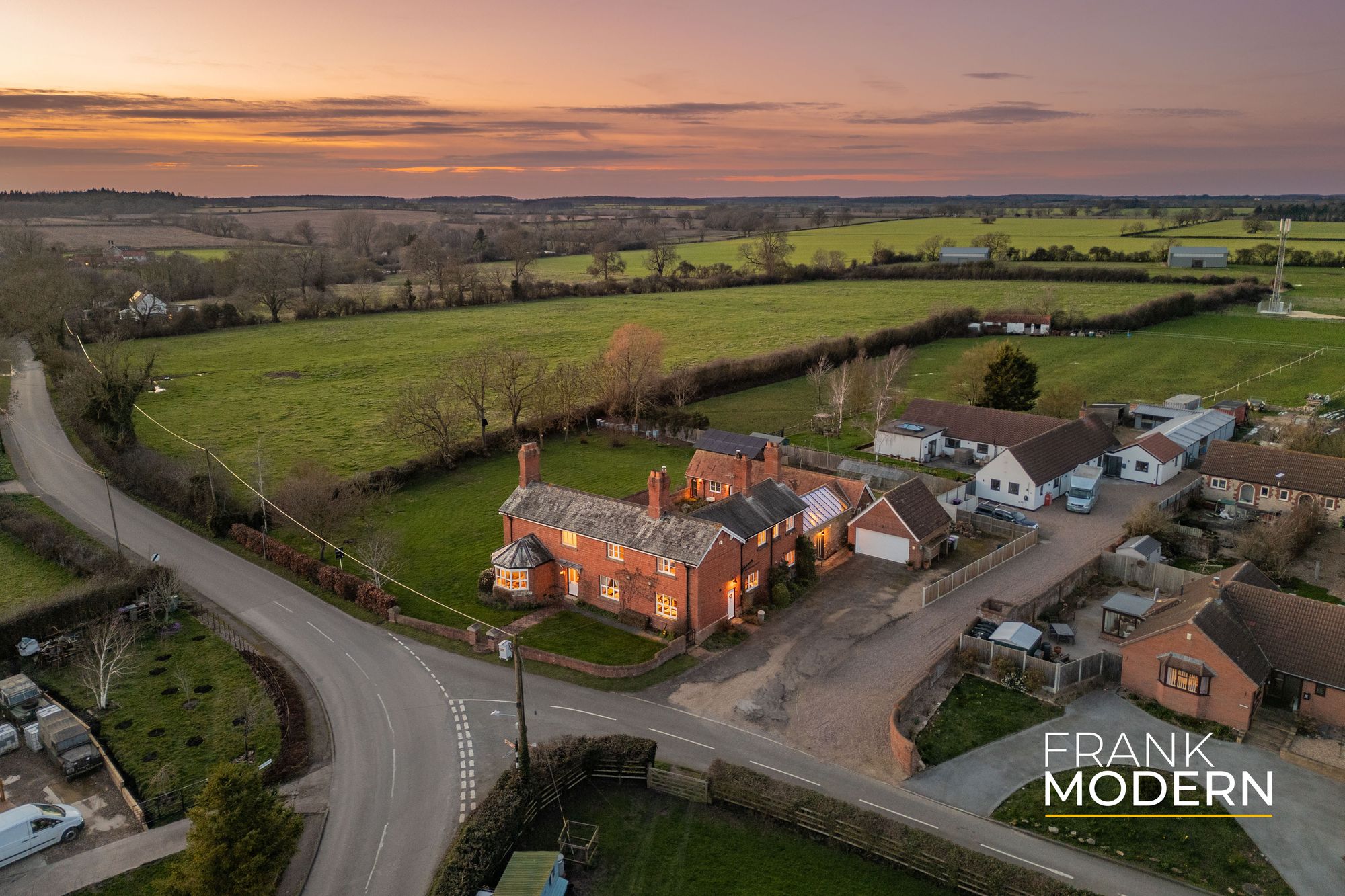 Set back from the lane, the house is approached via a driveway providing ample parking and access to a detached double garage. The grounds wrap around the house, while the surrounding countryside enhances the peaceful rural setting.